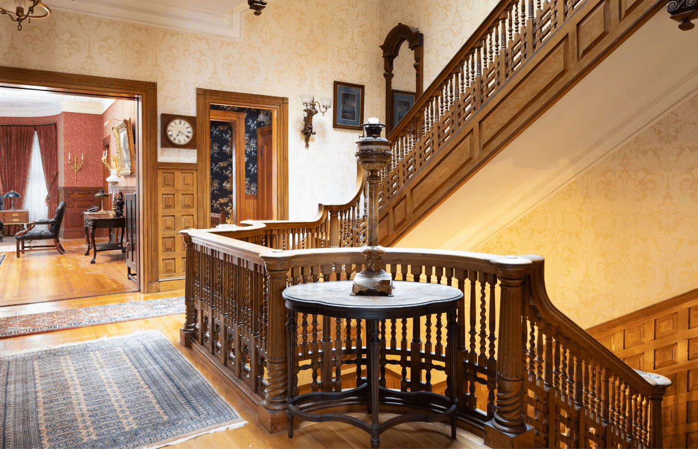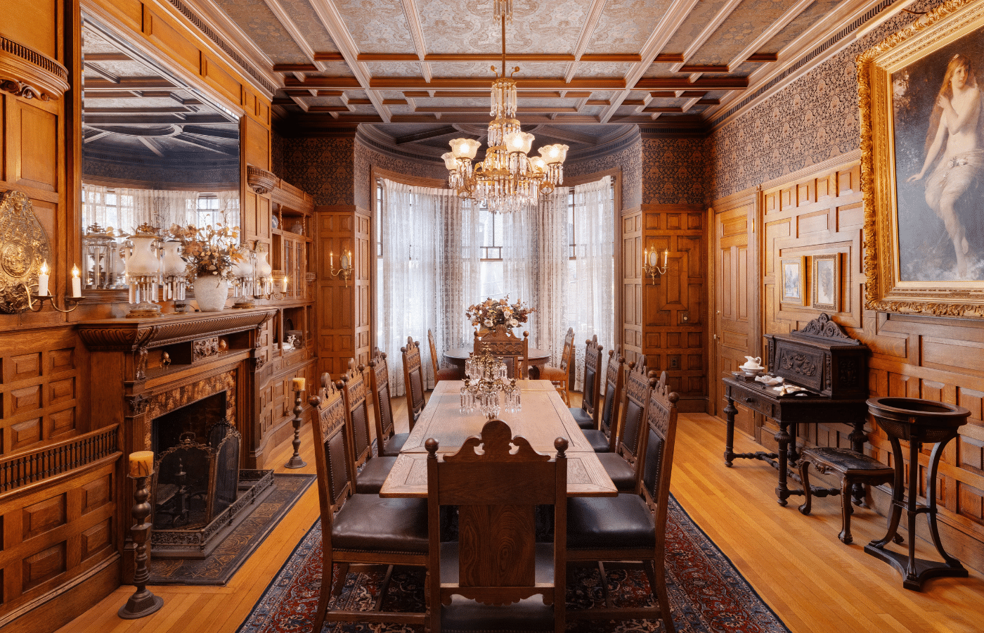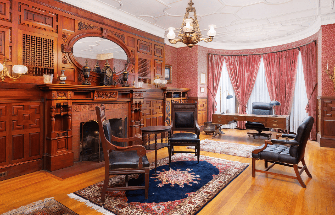 The home has only had a handful of owners since then, and much of the original interior architecture and design remain intact. At 28 feet wide, the building has a commanding presence along Commonwealth Avenue. Grand formal rooms are adorned with quarter sawn oak paneling, carved fireplaces (16 total), and period lighting fixtures forged in bronze, crystal and brass. There are embossed ceilings, built-ins crafted from cherry, and a museum quality central staircase connecting the floors.